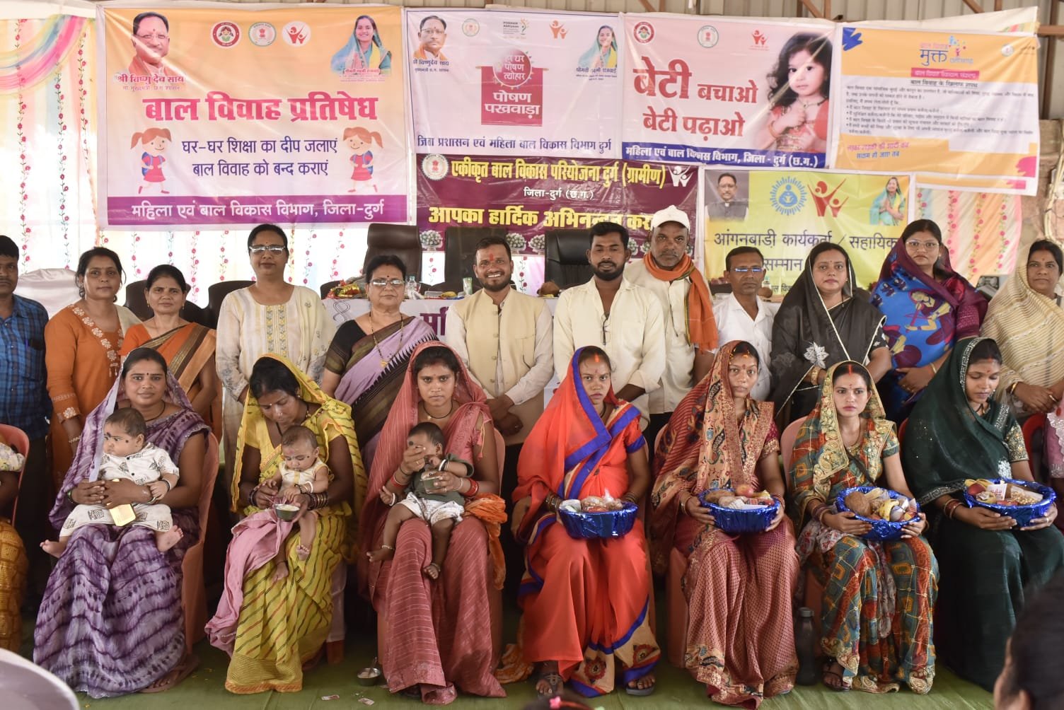 जनपद अध्यक्ष ने इस तरह के विभिन्न कार्यक्रम के माध्यम से पोषण व स्वास्थ्य की जानकारी प्रदान करने के लिए विभाग की सराहना की।डॉ निशा शर्मा ने कुपोषण के कारण को बताते हुए माताओं को पोषण स्तर का ध्यान रखने और बच्चों के खान पान पर विशेष ध्यान देने हेतु जागरूक किया। आईसीपीएस की टीम द्वारा पॉक्सो एक्ट बाल विवाह मुक्त अभियान दहेज प्रताड़ना घरेलू हिंसा अधिनियम मिशन वात्सल्य की विस्तृत जानकारी प्रदान किया गया। पोषण पखवाड़ा अंतर्गत कार्यक्रम में उपस्थित सभी लोगों को बाल विवाह मुक्त छत्तीसगढ़ अभियान हेतु शपथ दिलाई गई।
