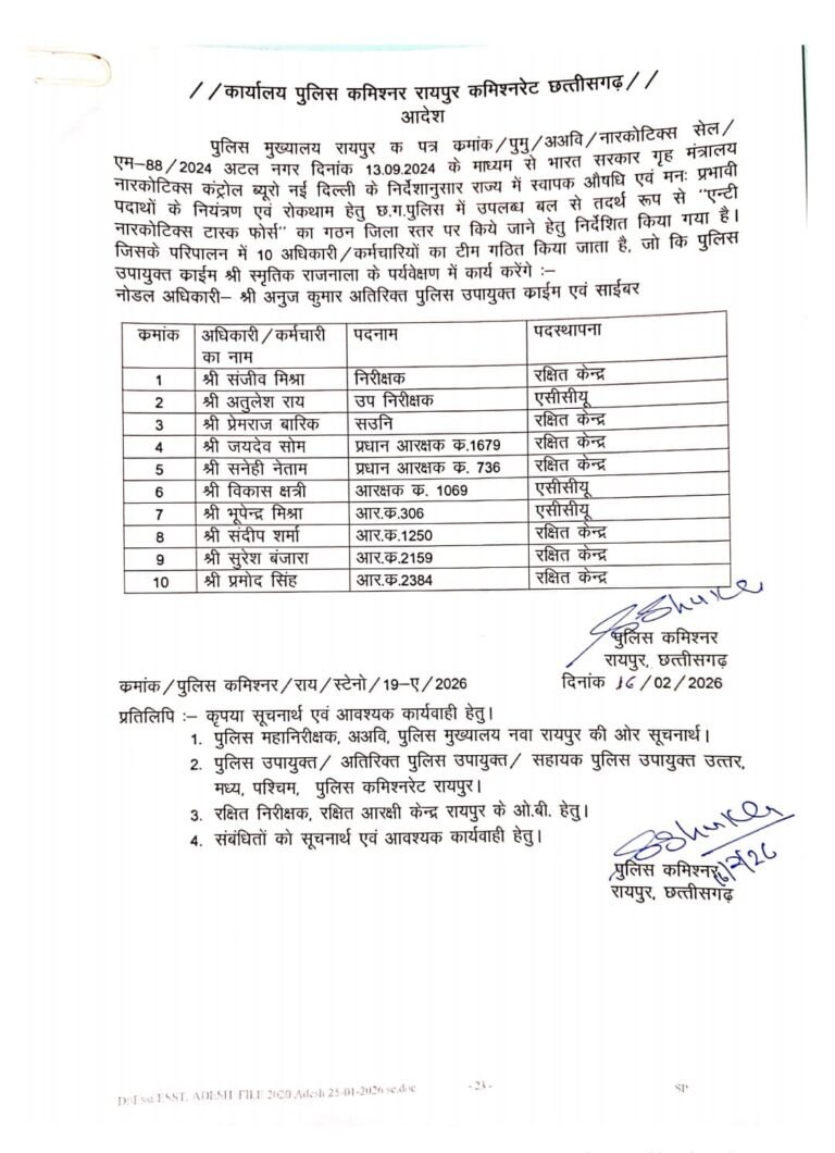 रायपुर…नशा नियंत्रण एवं रोकथाम के लिए किया गया ANTF टीम का गठन…. अनुज कुमार ACP काईम एवं साईबर…