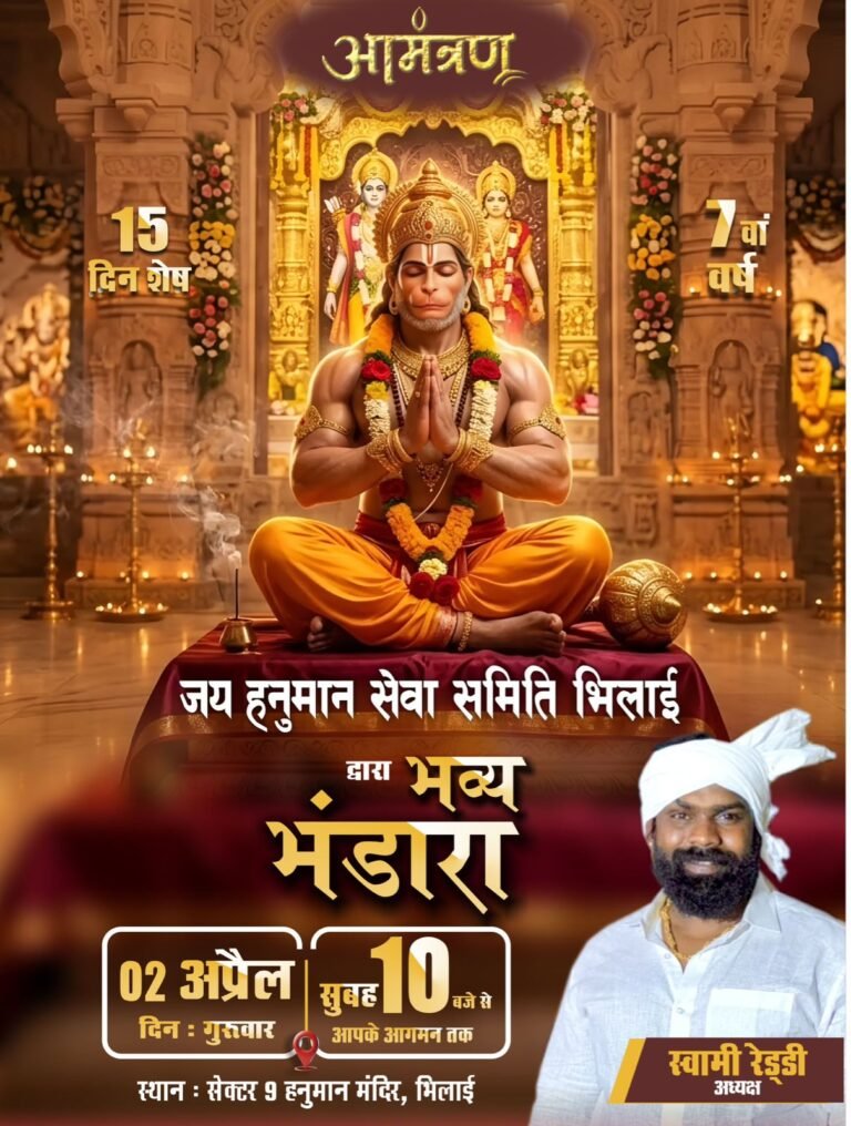 भिलाई। शहर में एक बार फिर आस्था और सेवा का भव्य संगम देखने को मिलेगा। जय हनुमान सेवा…